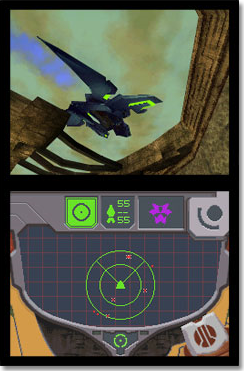 Metroid Prime Hunters has two modes: Adventure (single) and Multiplayer. Simple enough, right? Adventure will send you full speed ahead into another classic Metroid tale similar to the previous two Prime games. For the first time, though, you’ll gain control of Samus’ ship. This is where you’ll scan the surface of the Alimbic Cluster in search of plans to land. You won’t be able to fly the ship like many had wanted, but it’s still pleasing to finally see a first person view inside Samus’ shelter.